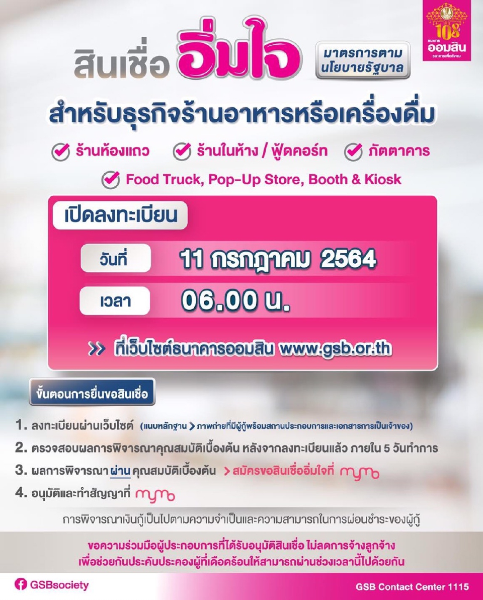 คล กด รายละเอ ยดขอก ส นเช ออ มใจ ออมส น ส งส ดรายละ 1 แสนบาท กล มร านอาหาร