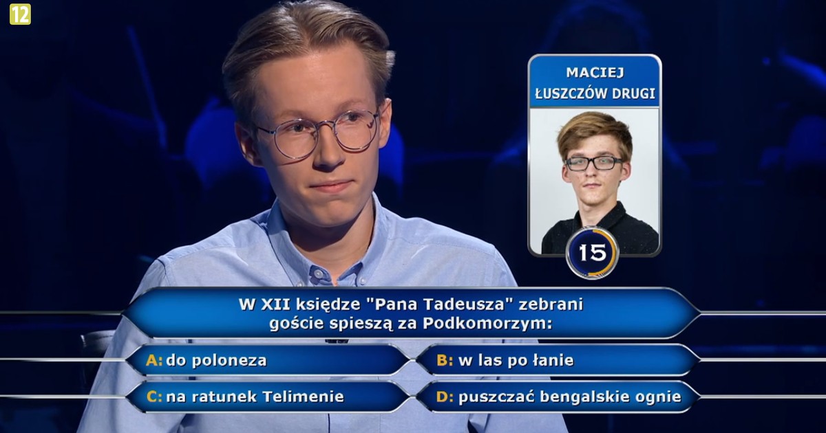 Odcinku 5 sezonu programu Milionerzy pojawiło się pytanie za milion złotych. Jakie mogą być pytania do Milionerów. Najszybciej na pytanie eliminacyjne odpowiedział historyk Sebastian Szczęsny.