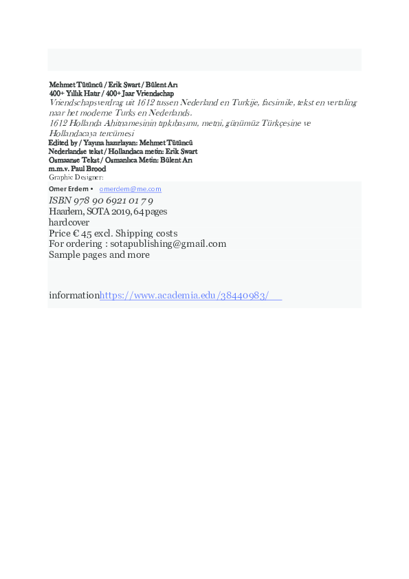 Pdf 400 Yillik Hatir 400 Jaar Vriendschap Mehmet Tutuncu Erik Swart Bulent Ari Mehmet Tutuncu And Erik Swart Academia Edu